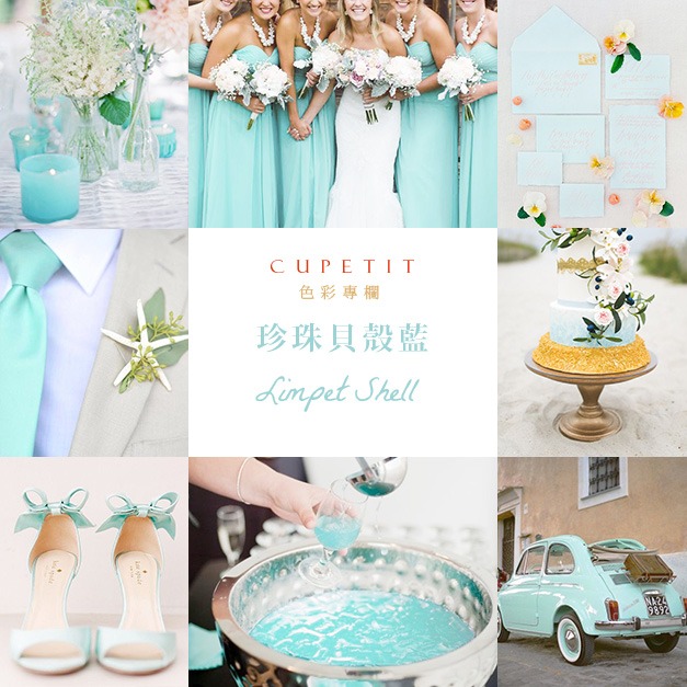 澄淨明亮的珍珠貝殼藍,作為婚禮的主題色調,